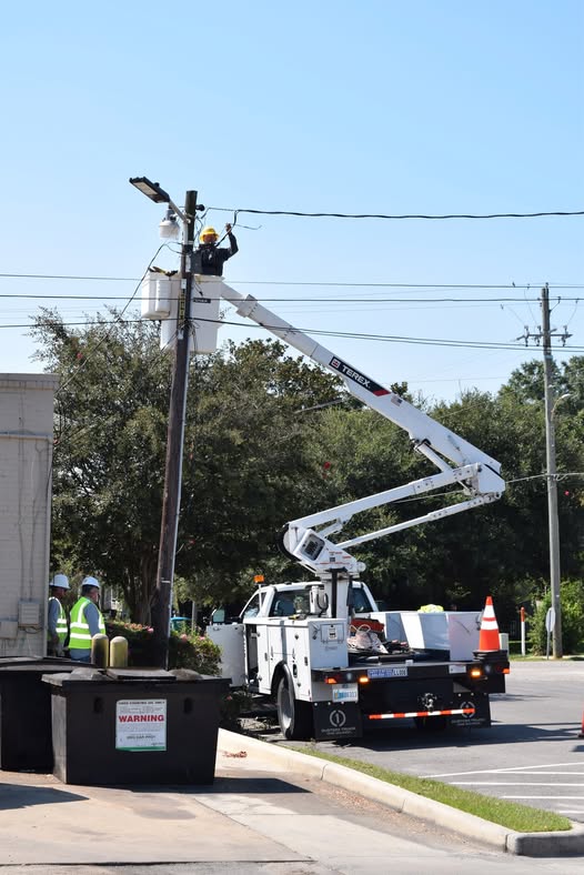 Crews from Mobile-based Utilities Lines Construction Services (ULCS) worked Thursday to repair electrical wiring in a street light just off the intersection of Trammell and Church streets. An employee of the firm said he and his co-workers are also rewiring a second streetlamp just a few yards north of that one.